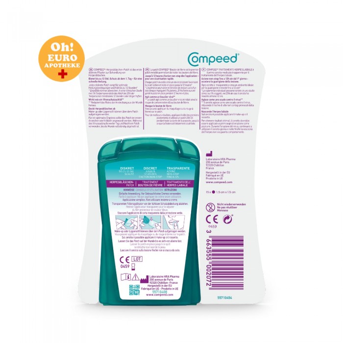 Compeed 헤르페스 물집 패치는 상처 치유를 촉진하고 딱지 형성을 줄이는 것으로 입증되었습니다.