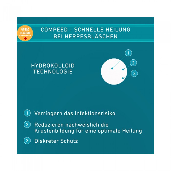 헤르페스 물집이 인구의 5분의 1에게만 생기더라도 모든 사람의 약 90%가 이 전염성 병원체를 가지고 있습니다. 헤르페스 물집의 일반적인 유발 요인에는 약한 면역 체계, 햇빛 노출, 호르몬, 발열 및 스트레스가 있습니다. Compeed 헤르페스 패치는 보기 흉한 거품을 눈에 띄지 않게 덮고 직접적인 피부 접촉으로 인한 감염 위험을 줄일 뿐만 아니라 치유도 개선합니다. 여기서 Compeed는 효과적인 하이드로콜로이드 기반 시스템을 제공합니다. Compeed 하이드로콜로이드 기술. Compeed의 하이드로콜로이드 플라스터는 고유한 원리를 기반으로 합니다. 패치에 통합된 활성 젤이 피부를 촉촉하게 유지합니다. 피부를 유연하게 유지하는 데 도움이 됩니다. 따라서 영향을 받는 부위가 완전히 둘러싸여 편안하게 착용할 수 있습니다.