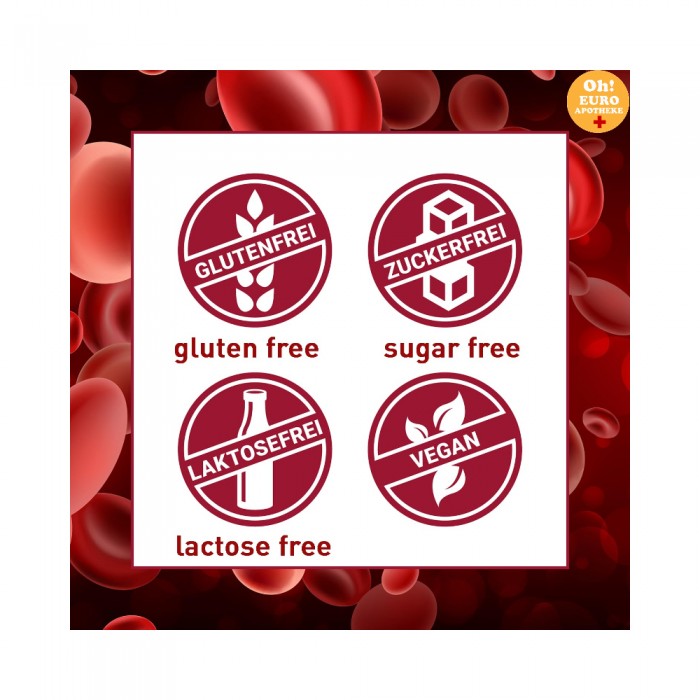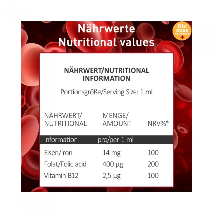 1ml씩 하루 30회 섭취 가능, 철분 14mg 함유, 비건(RDA 또는 권장 일일량의 100%) - 글루텐 프리 - 락토오스 프리 - 독일에서 인증 생산.