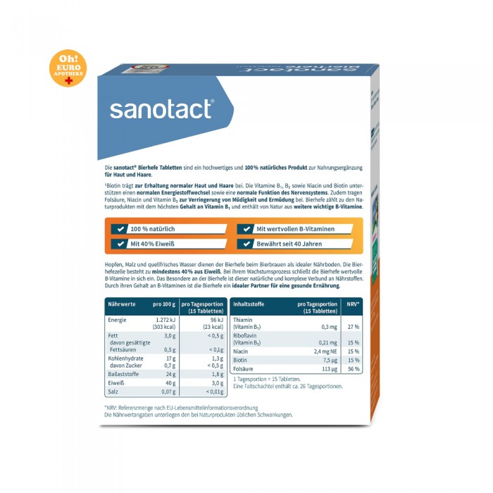 사노탁트 맥주 효모 정제는 시간 제한 없이 식이 보충제로 사용할 수 있습니다.