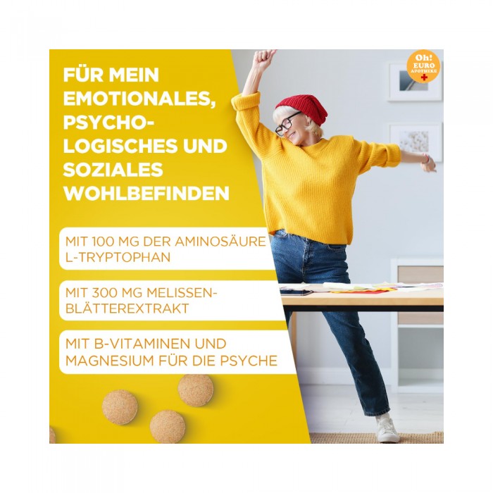 이 비건 정제는 레몬밤, L-트립토판, 마그네슘, 비타민 B 복합체 등 고품질 성분을 함유하여 정신 활동과 기분 전환에 도움을 줍니다. L-트립토판은 체내에서 기분을 좋게 하는 호르몬인 세로토닌으로 전환되는 필수 아미노산입니다. 고용량 정제에는 최적의 세로토닌 생성을 촉진하는 L-트립토판이 1회 복용량당 100mg 함유되어 있습니다. 레몬밤은 수세기 동안 진정 및 이완 효과로 알려져 왔습니다.