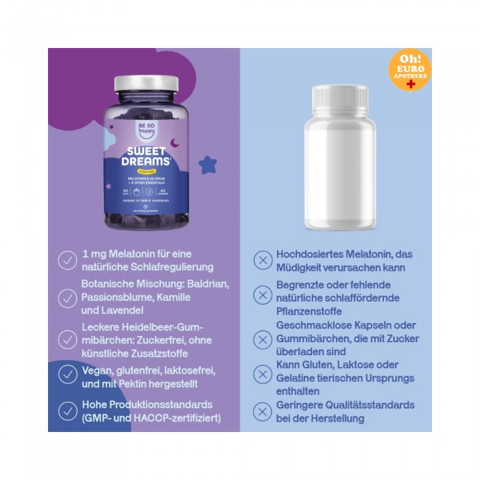 편안한 수면을 위한 딥슬립 젤리. 독일산, 비건 & 할랄, 과일의 상큼한 맛으로 기분 좋은 일상을 최대한 가볍고 맛있게 만들어줍니다. 건강하고 끈적이지 않아 치아에 달라붙지 않습니다.
