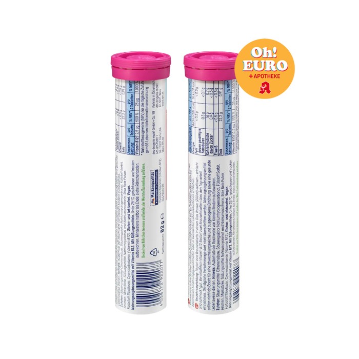 특징고함량 비타민 B12정제 하나당 충분한 양의 B12를 제공해에너지 생성과 신경 기능 유지에 도움피로 회복 지원체내 에너지 대사 과정에 필수적인 영양소로, 피로감 완화에 도움혈액 생성 도움적혈구 형성과 신경 세포 보호에 중요한 역할발포정 형태물에 빠르게 녹아 청량하게 섭취 가능하며 흡수율이 높음무가당건강한 단맛으로 칼로리 부담이 적음독일 제조엄격한 품질 관리와 안전성 검증을 거친 제품성분 및 속성주요 성분비타민 B12(시아노코발라민)기타 성분구연산, 탄산수소나트륨, 소르비톨, 체리향 아로마, 비트루트 파우더,감미료(아세설팜K, 소듐 사이클라메이트) 등알레르기 정보특정 성분에 민감한 경우 원재료를 반드시 확인