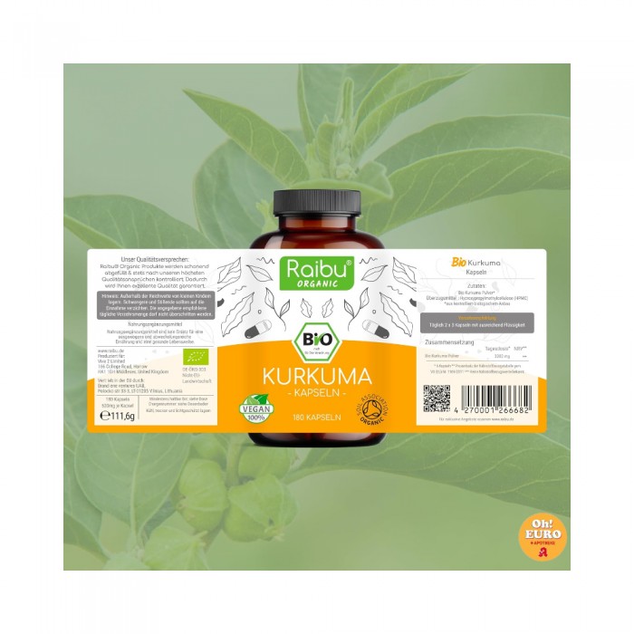 Raibu Organic Turmeric KURKUMA Capsules [180stk]
