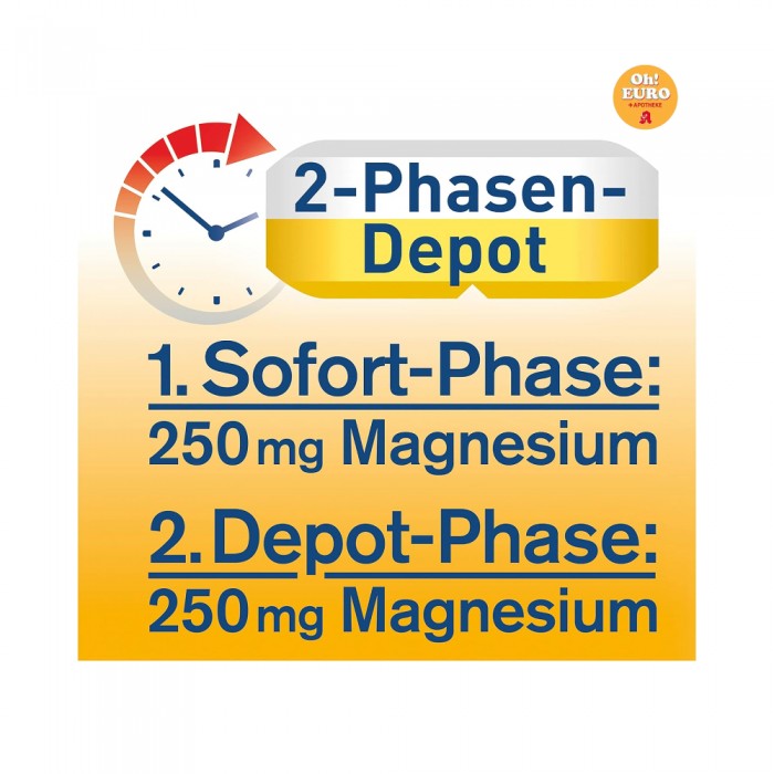 2단계 저장 방식: 2개의 정제 층 덕분에 250mg의 마그네슘을 빠르게 공급하고 장기적으로 근육에 공급할 수 있습니다.